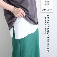 Tシャツ スリット レイヤード ウエストゴム 付け裾 つけ裾 体型カバー 白 黒 レディース トップス 着まわし カジュアル おしゃれ