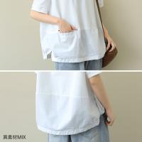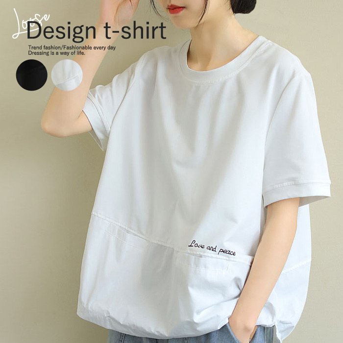 Tシャツ レディース トップス 半袖 春 夏 黒 白 おしゃれ ロゴ カットソー プルオーバー 異素材 [郵1.5]^t803^