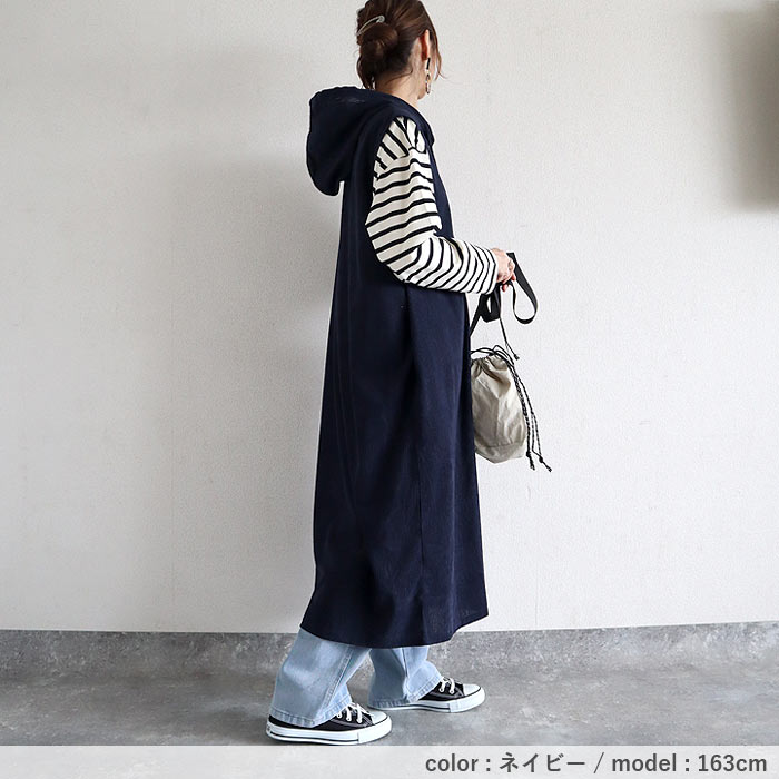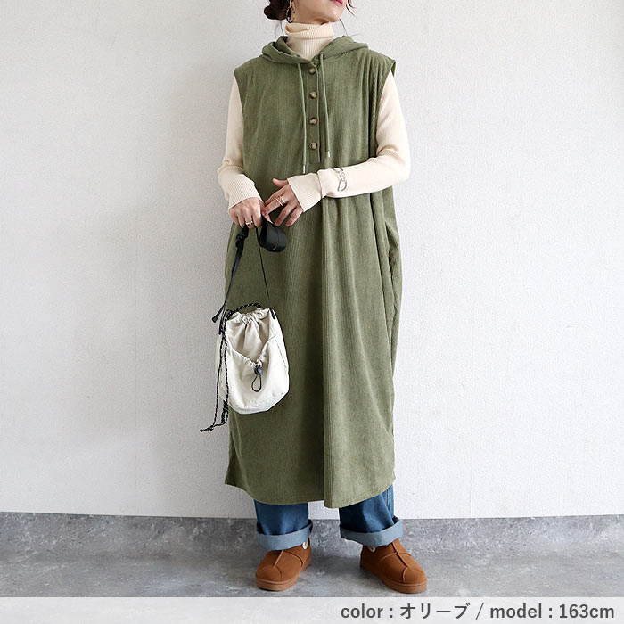 | 検索用 | ワンピース レディース コーデュロイ 秋 冬 白 黒 フード付 ノースリーブ 重ね着 ミドル丈 ワンサイズ ナチュラル 動きやすい ポケット付 シンプル レイヤード きれいめ カジュアル 40代 30代 50代 60代 大きいサイズ ゆったり 大人 カジュアル かわいい SALE セール uricca ウリッカ うりっか |