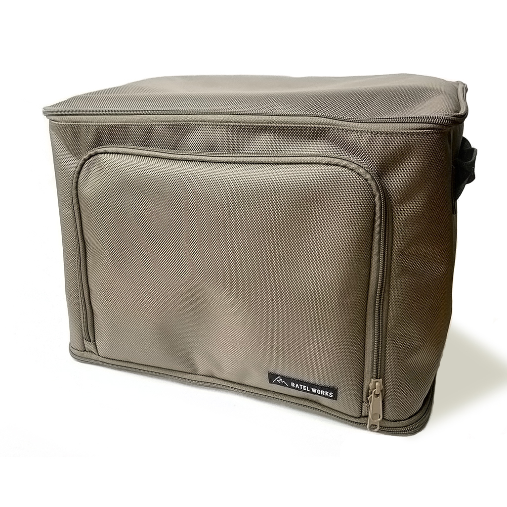 上面からの取り出しはもちろん、前面のジッパー部から衣類を取り出すことができます。内部に心材が入ってるため、積み重ねが可能で、狭いテント中、車内などで積み重ねた際は前面から取り出すと便利です。