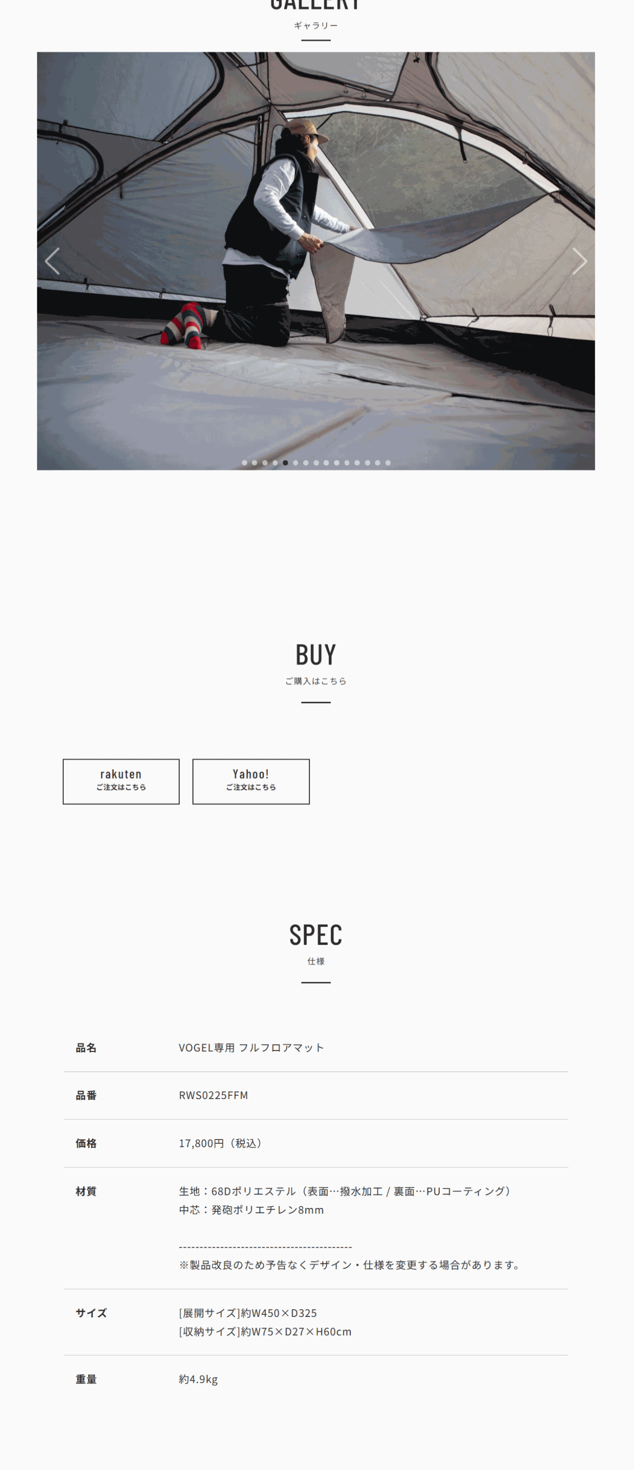 VOGELフルフロアマット RATELWORKS ラーテルワークス キャンプ ファミリー マット RWS0225FFM 予約