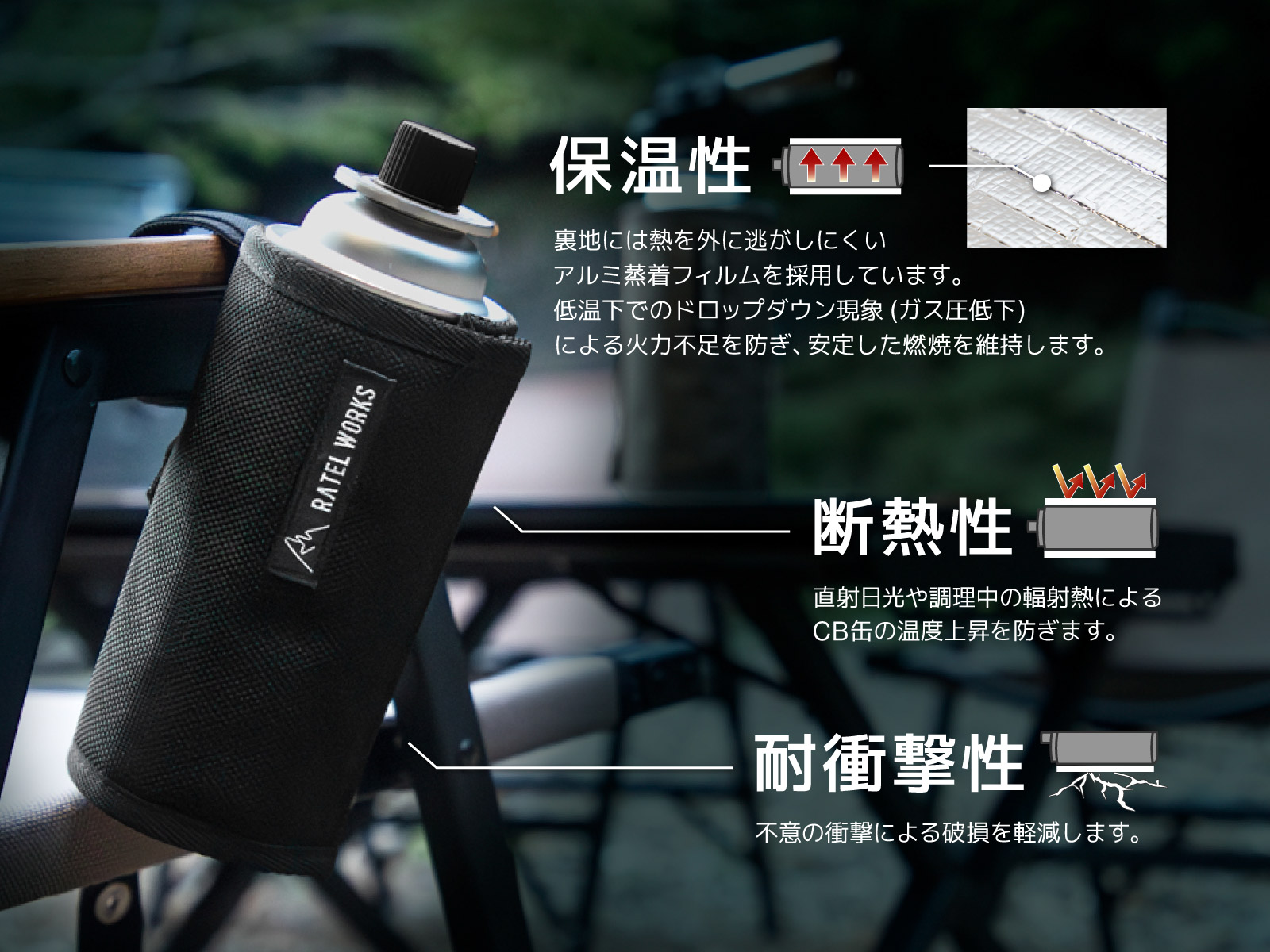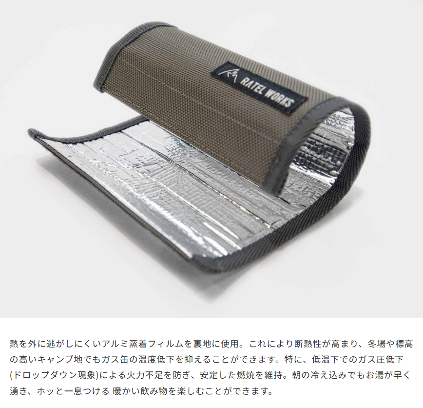 CB缶カバー THERMO SHIELD サーモシールド RATELWORKS ラーテルワークス キャンプ CB缶 保護カバー 遮熱 アルミ蒸着フィルム ブラック グレージュ RWS0337