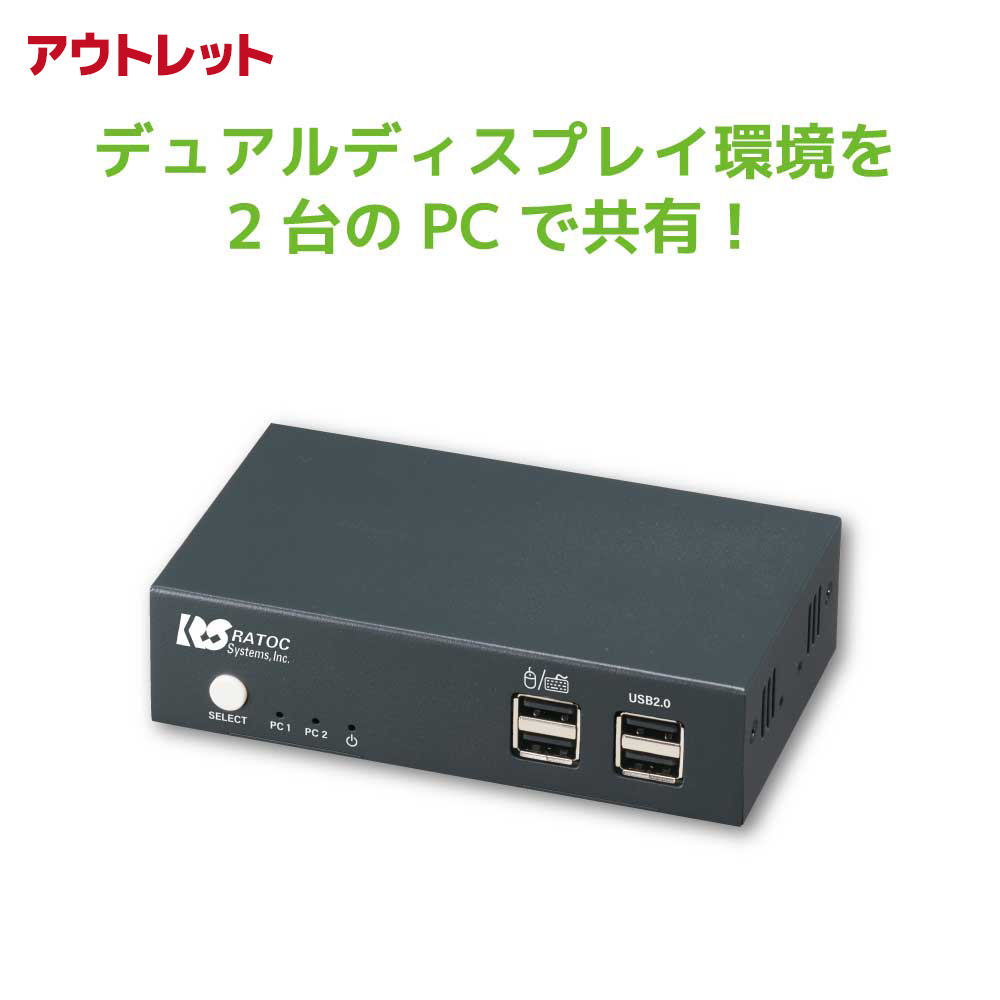 キーボード・ディスプレイ・マウスを2台のパソコンで切り替えて快適操作 本製品を使えば、お気に入りの機器を2台のパソコンで切り替えて快適に操作することができます。 使い慣れたキーボードとマウスを複数台のパソコンで共有して、作業効率アップ。 それぞれのPCにディスプレイを用意する必要がなく、省スペース・広々とした操作感を両立できます。 |