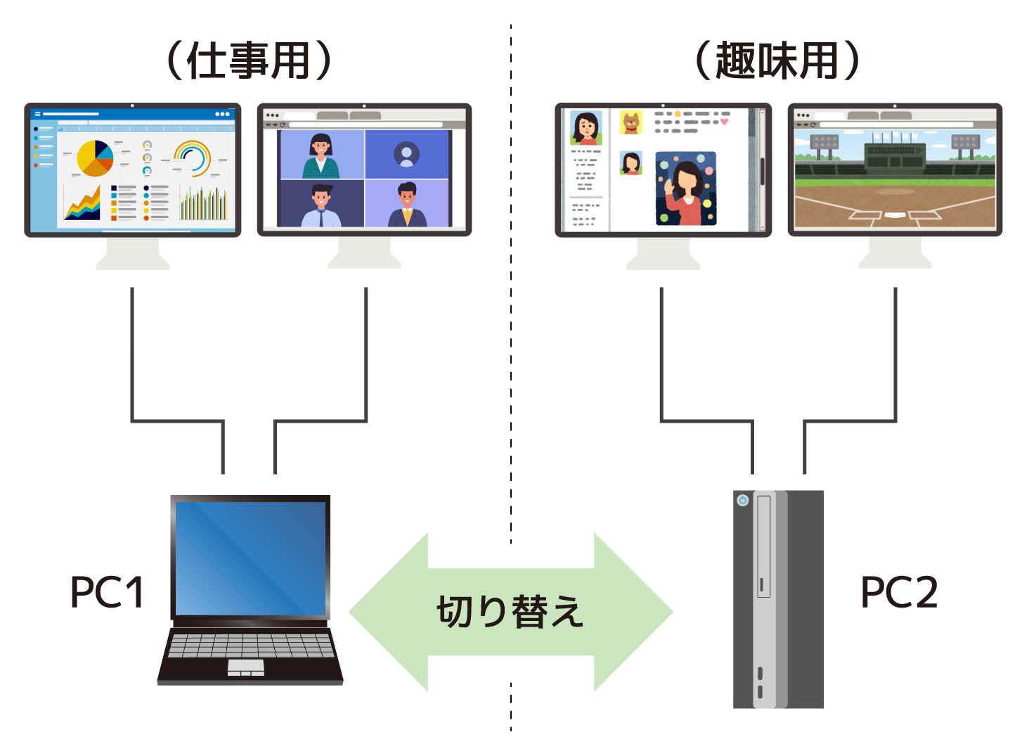 | 周辺機器を2台のパソコンで切り替えて操作 |