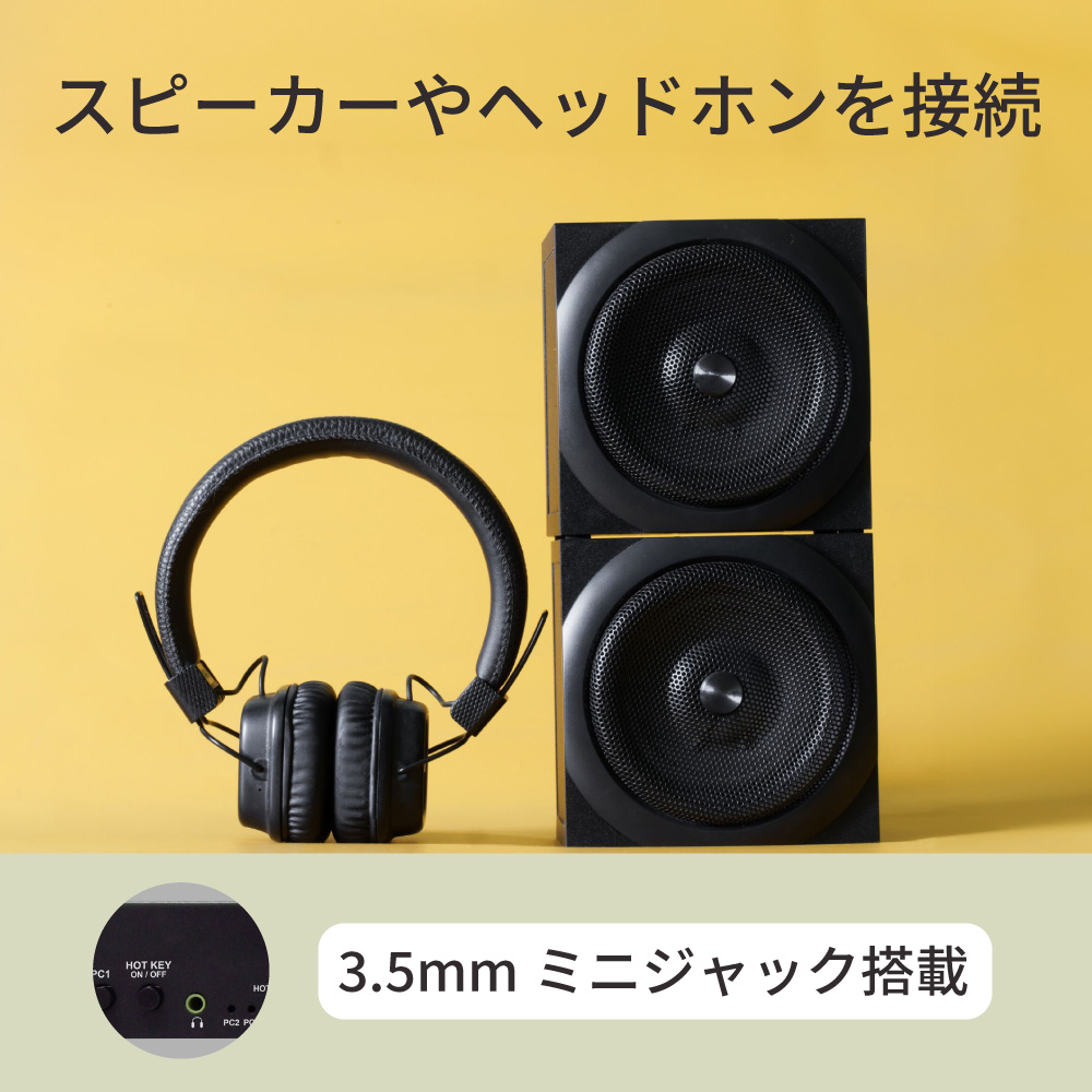 本製品はPC用スピーカー、ヘッドホンを接続可能。