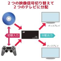 2つの映像信号切り替えてを2つのテレビに分配 本製品は、ビデオレコーダーやパソコン、ゲーム機器など2台の映像機器と接続し、2台のテレビ・ディスプレイに映像を切り替えて2分配することのできる。切替機能付のHDMI分配器です。 | ||||||||||||||||||||