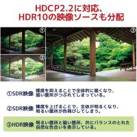 | ※ HDR10対応の出力機器、およびTV、ディスプレイ・プロジェクターをご使用ください。 ※ 接続するテレビ・ディスプレイのどちらかがHDR10に対応していない場合、HDR機能は動作しません。 ※ HEC、ARCには対応していません。 ※ Blu-rayプレーヤー『Panasonic DMP-UB90』、家庭用ゲーム機『SONY Playstation4 Pro』で動作確認済み | ||||||||||||||||||||
