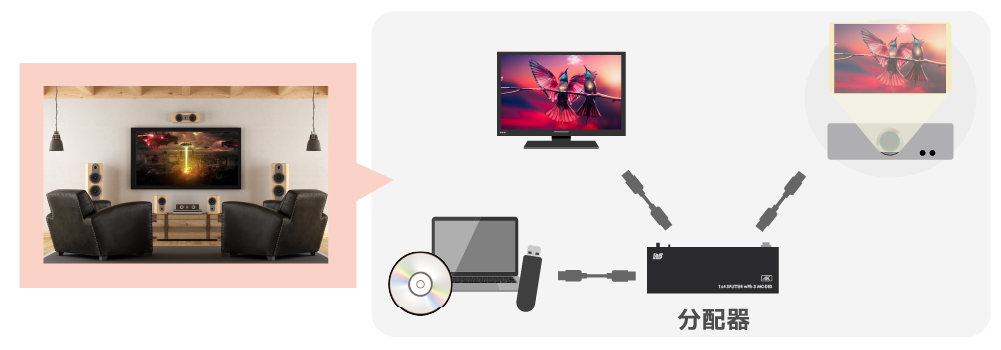 | 分配利用例(3) 大迫力のホームシアターを楽しむ | ||||||||||||