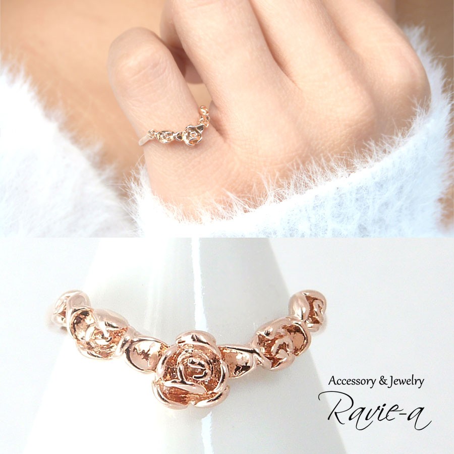 小さな薔薇が咲く華奢なピンキーリング。