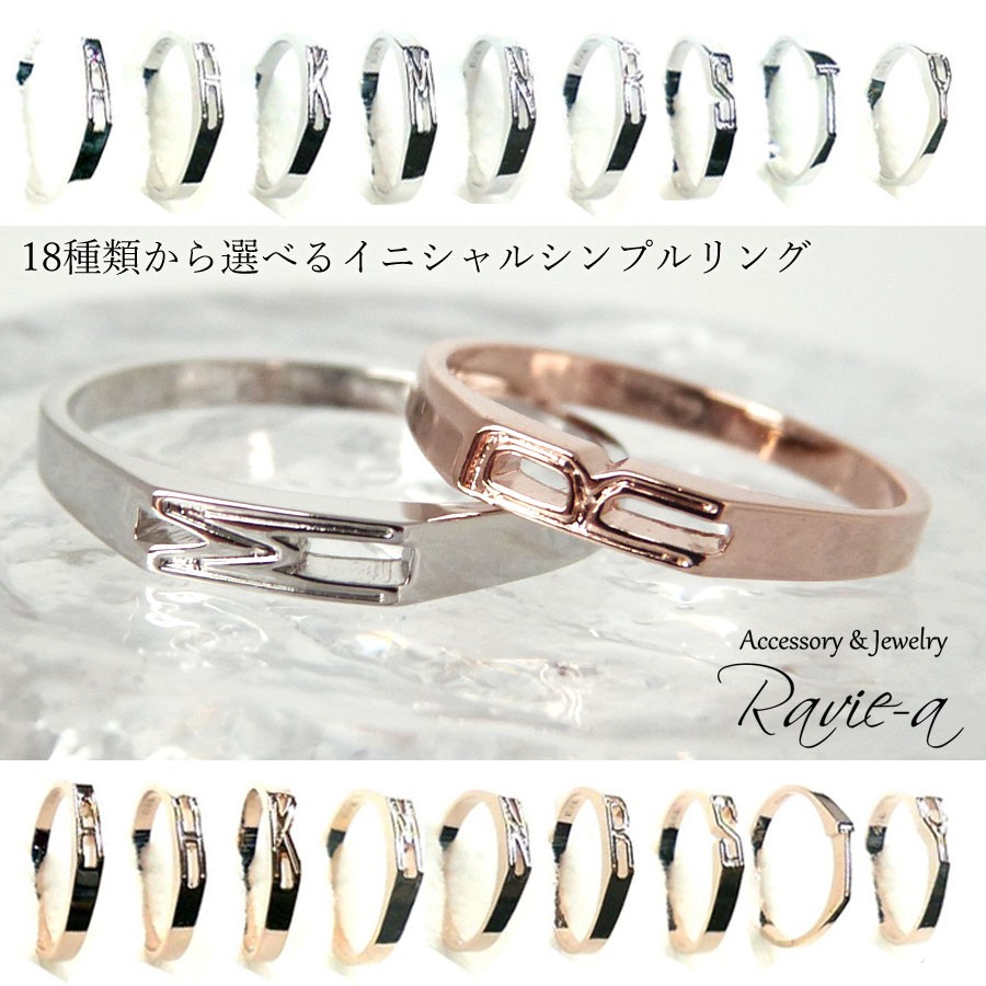 イニシャルリング 指輪 ペアリング シルバー925 ピンクゴールド シンプル クリスマスプレゼント 選べる2カラー 1本売り