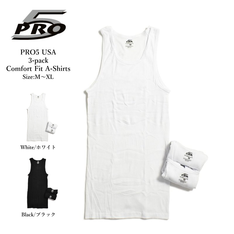 PRO 5 3P A-SHIRTS タンクトップ メンズ/プロファイブ/ホワイト/ブラック/インナー/無地/アンダーウェア/下着/3枚セット
