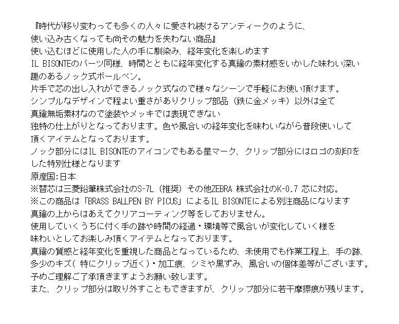 イルビゾンテ ボールペン IL BISONTE 真鍮 ボールペン〔 2024年 新作 〕 54_1_ 54242305770 メンズ レディース ( 商品番号 IB-24-05770 )