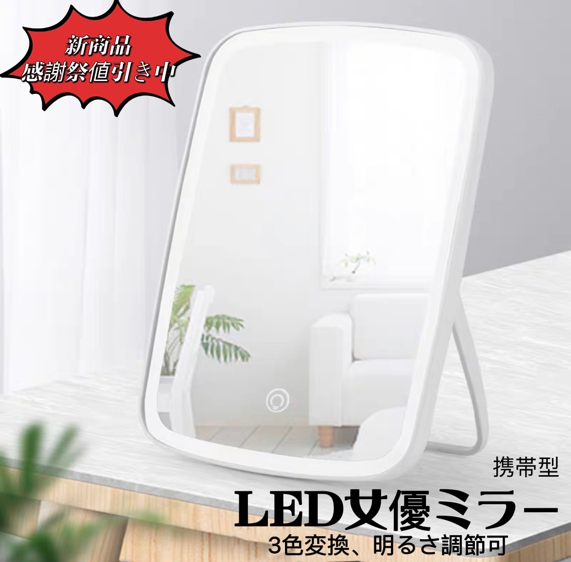 女優ミラー おしゃれ 卓上ミラー LEDライト付きミラー 鏡 卓上 ミラー ライト付き ライトミラー 卓上鏡 化粧鏡 三色調光 LEDミラー 明るさ調節 タッチボタン