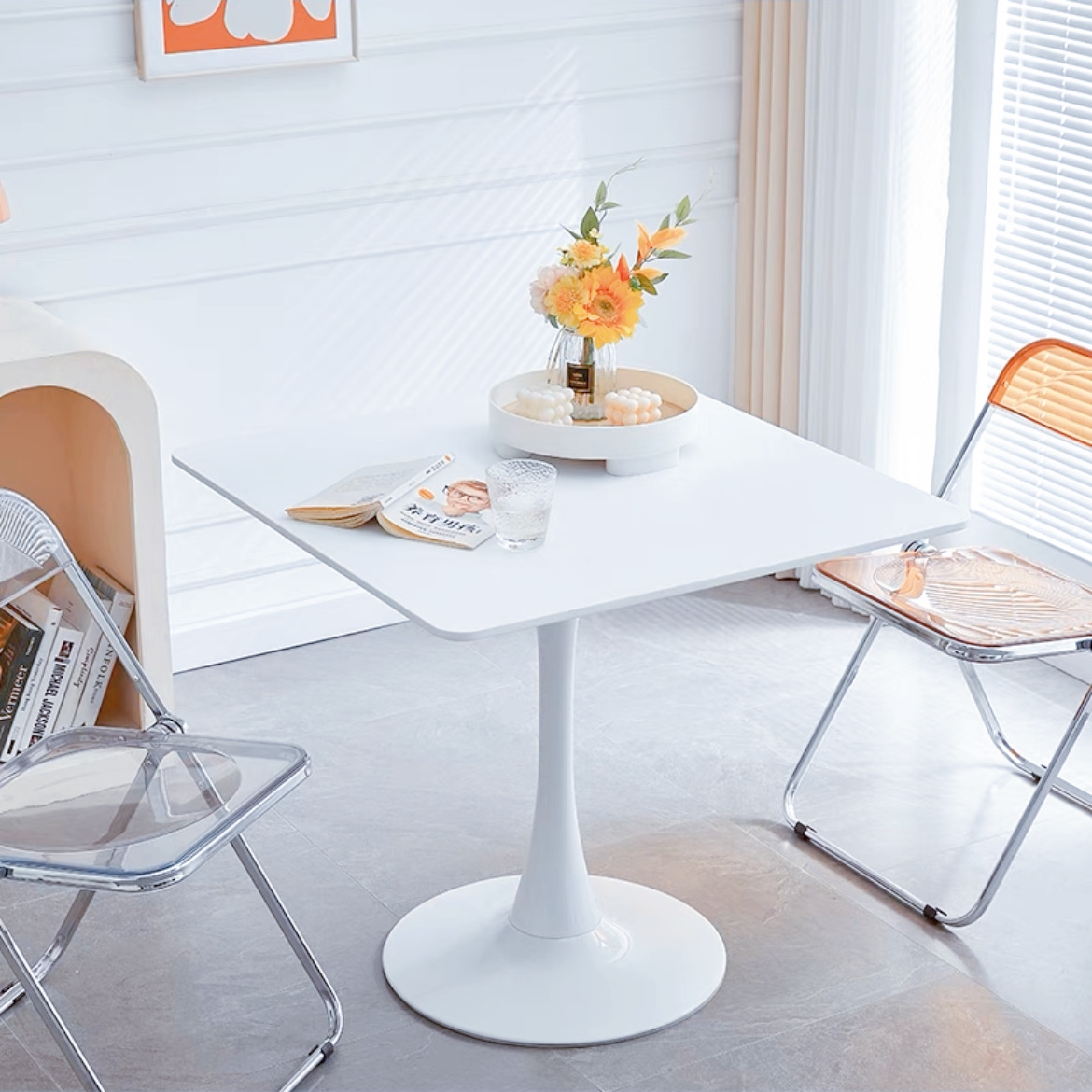 ダイニングテーブル、丸テーブル、白、幅60/70/80cm、高さ73cm、組み立て簡単、お手入れ簡単、円形、スチール、MDF、ホワイト、省スペース、コンパクト、2人用、3人用、おしゃれ、北欧、一人暮らし、韓国インテリア、カフェテーブル、韓国、韓国インテリア