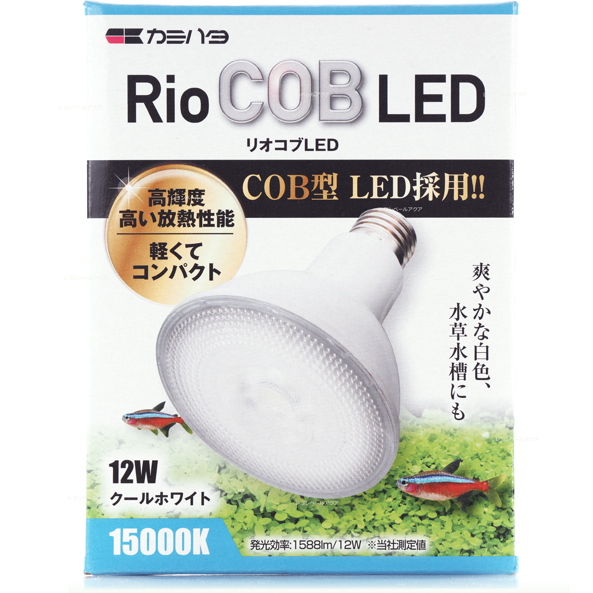 COB構造採用のRio COB LED 12Wクールホワイト、15000Kの高色温度で生体や水草を鮮やかに演出するE26口金対応照明
