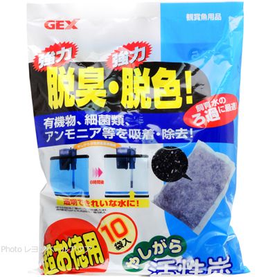 超お徳用 やしがら活性炭は強力脱臭・強力脱色。 有機物・細菌類・アンモニア等を吸着・除去。 透明できれいな水に。 飼育水のろ過に最適。
