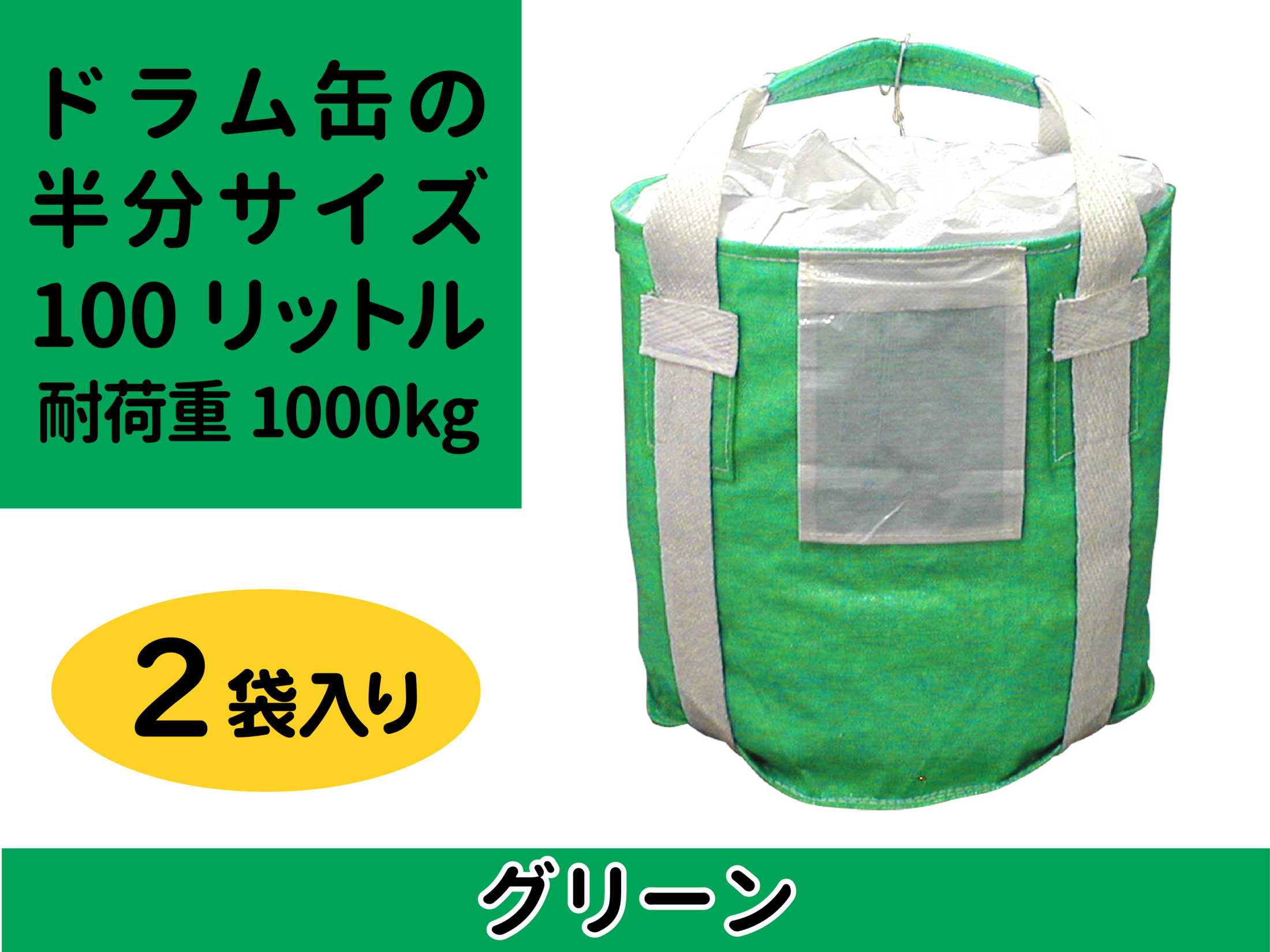 リレーバッグ RB10R2B-DCL-G 緑色 2袋入り 小型フレコン ドラム缶の半分サイズ 5色で分別 カラーバリエーション 100リットル 資源回収