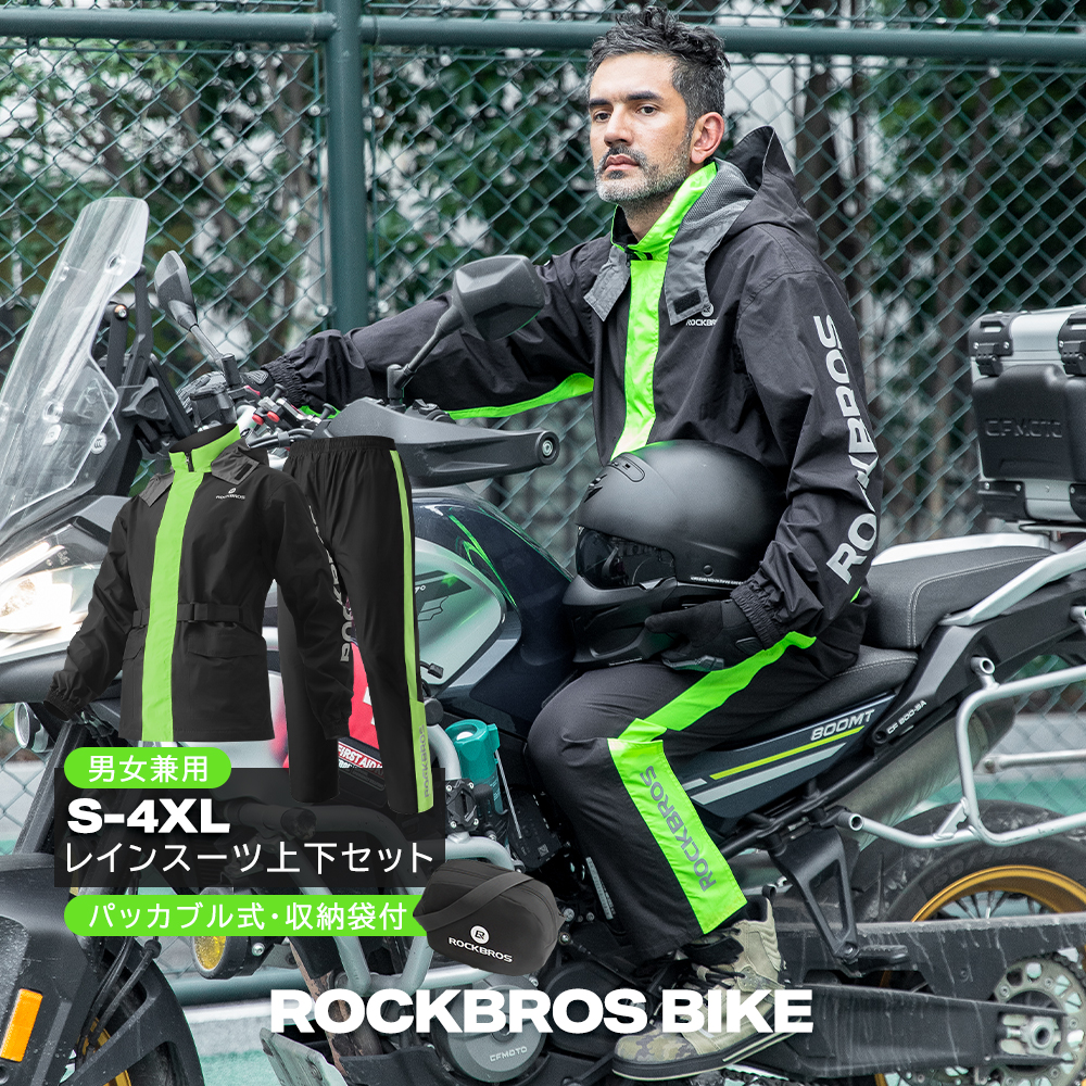 バイク レインウェア レインスーツ 上下セット セパレート 防水 撥水 高視認 パッカブル カッパ 雨具 自転車 釣り アウトドア ロックブロス