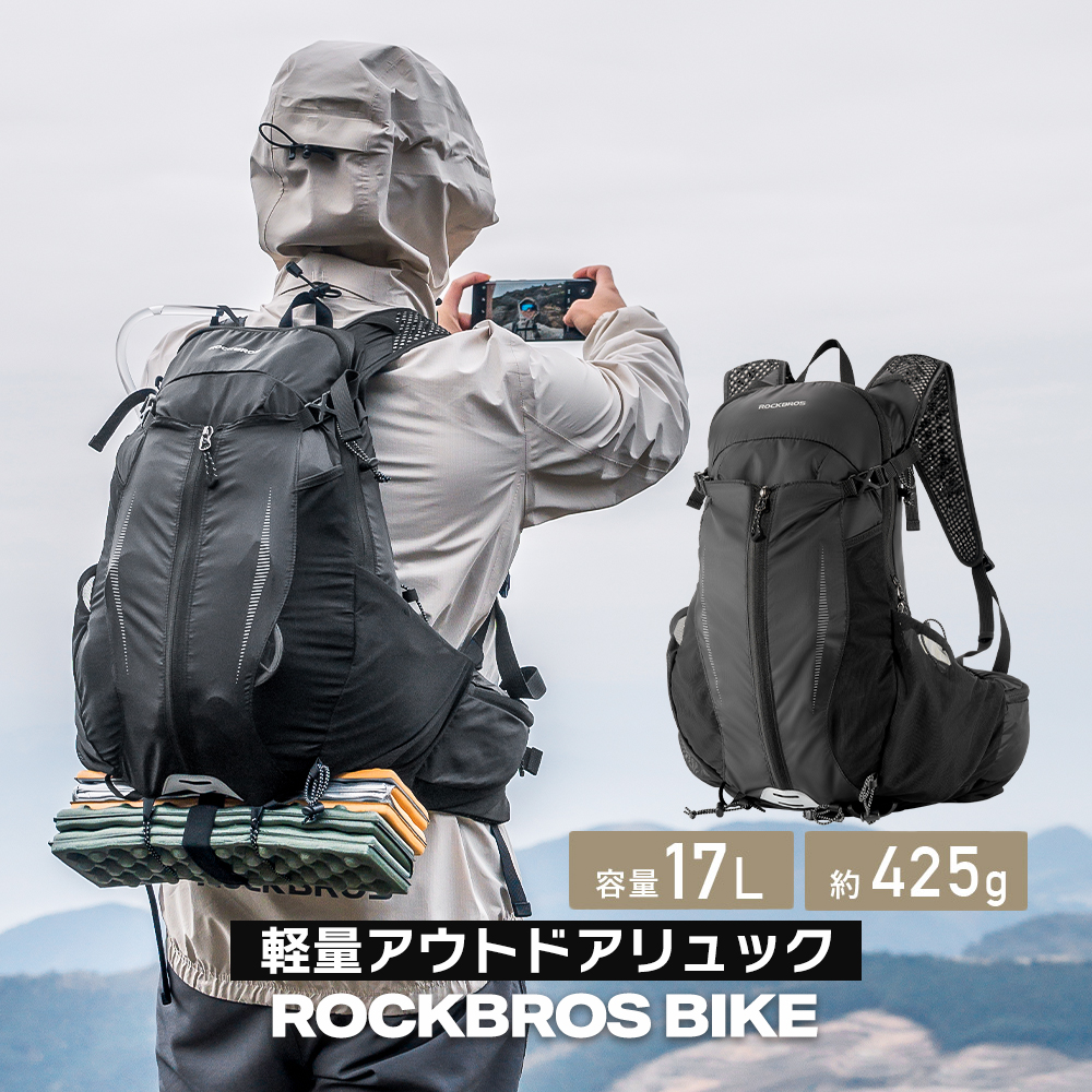 バイク リュック バックパック デイバッグ アウトドア 大容量 17L 軽量 レインカバー付 旅行 登山 ハイキング トレッキング キャンプ ロックブロス