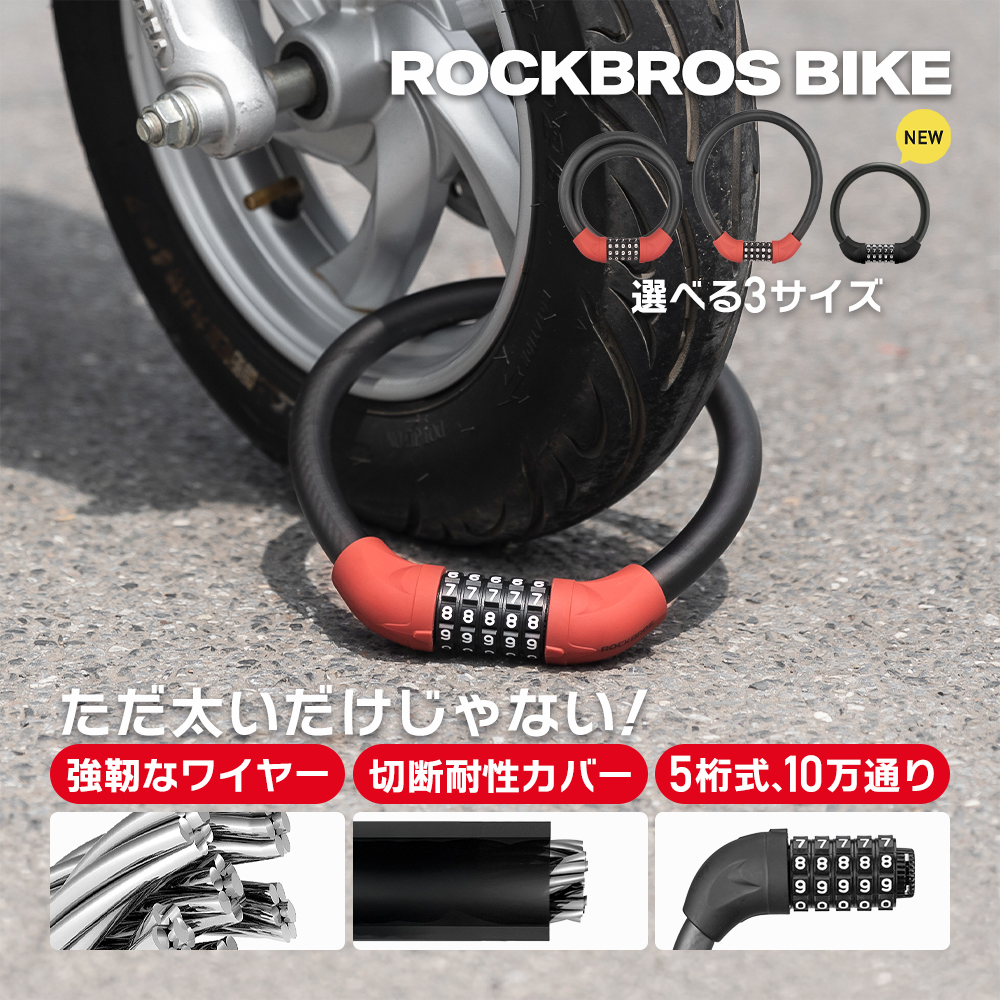 バイク 鍵 ダイヤルロック ケーブルロック 5桁式 太い 頑丈 強い 長い 選べる長さ 盗難防止 自転車 キックボード ロックブロス