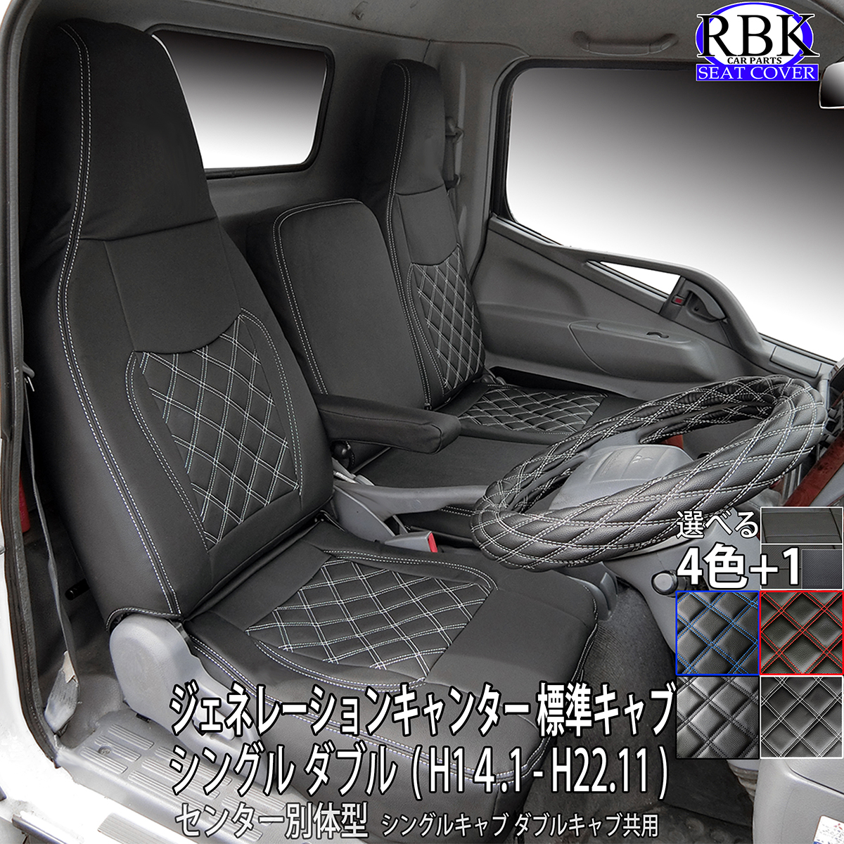 シートカバー ジェネレーション キャンター 標準 キャブ トラック 赤 青 白 黒 ステッチ 内装 部品 カスタム パーツ FUSO 三菱ふそう フソウ 三菱 商用