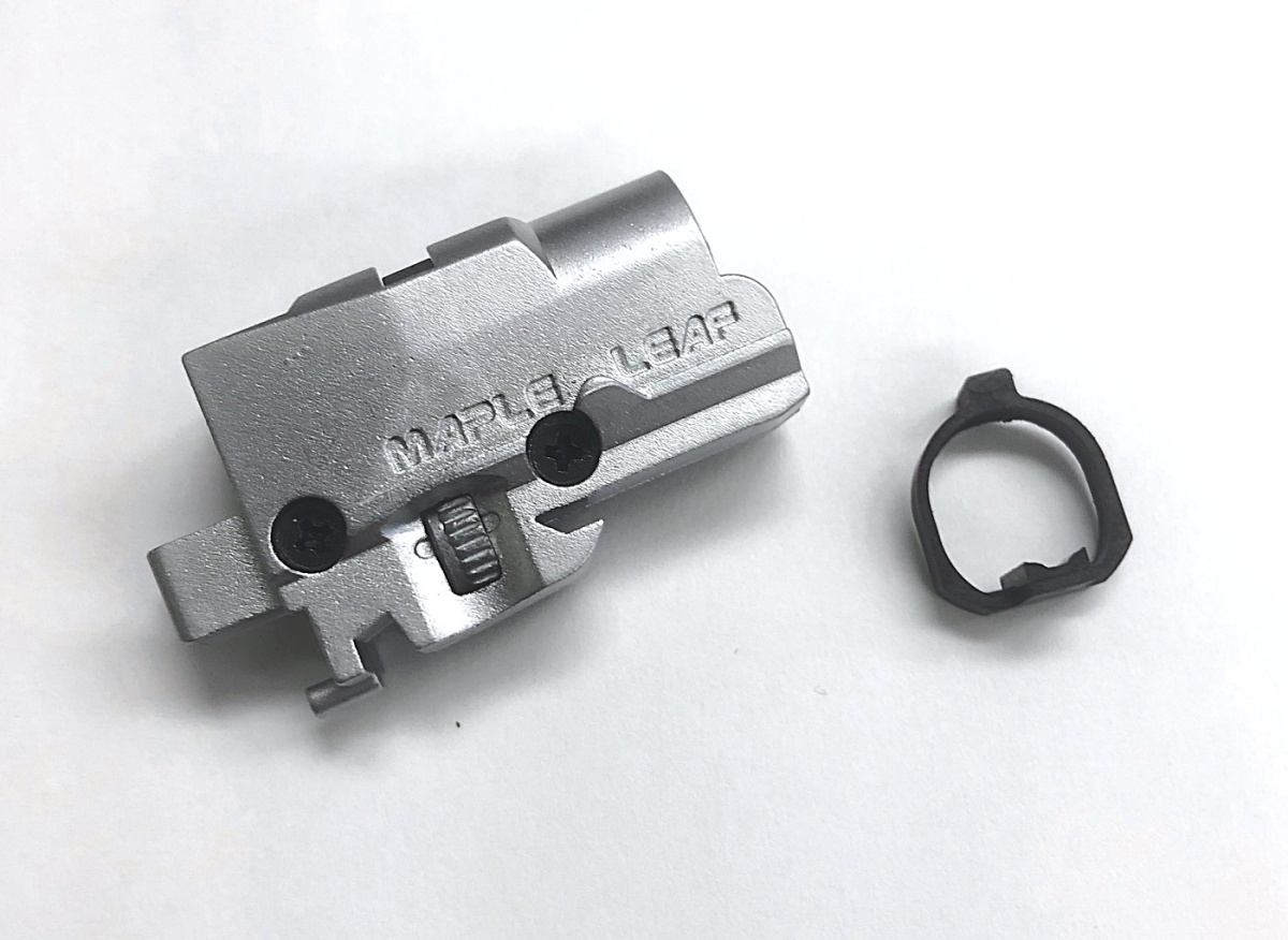 Maple Leaf 製の グロック17/18C ホップチャンバーセットです。アルミ製で精度が高く、HOP パッキンを長押しできる構造になっております。対応機種:グロック17/18C(WE/マルイ/VFC 対応)フルスチール・ホップ調整レバー、I Key テンショナー付属※在庫の有りの表示でも、お取り寄せになる場合がございます。メーカー欠品や生産終了等で入荷出来ない場合は、改めて弊社より連絡させて頂きます。また、ご注文をキャンセルとさせて頂く場合があります。予めご了承ください。