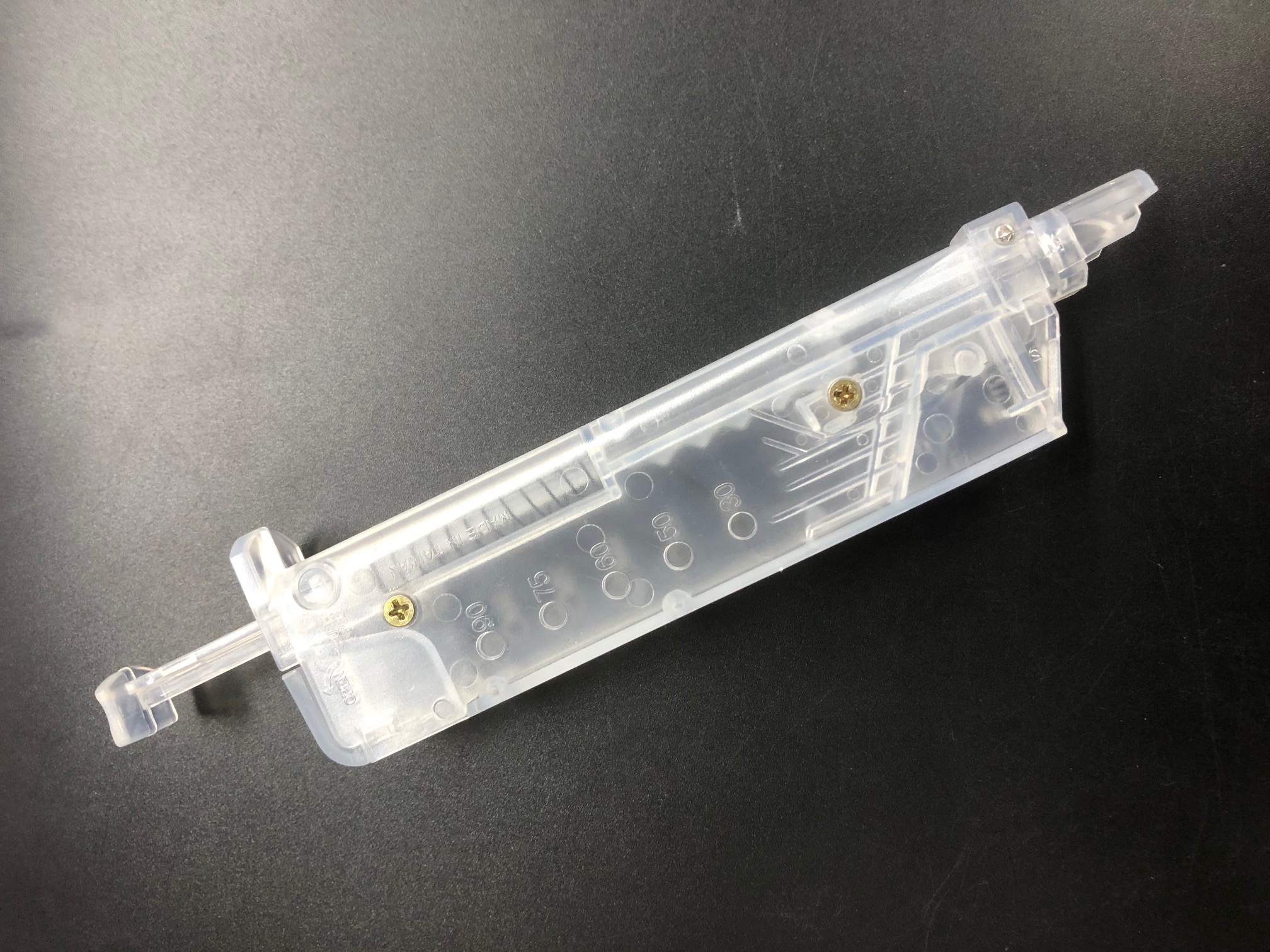 スケルトンタイプなのでBB弾の残量が一目で確認できます。