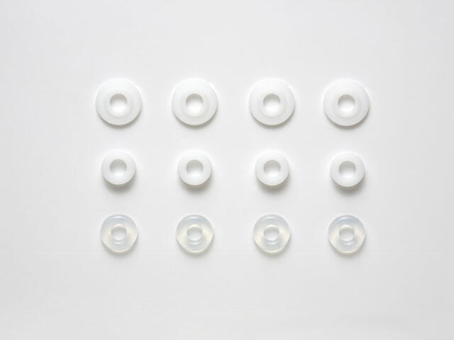 TRFダンパー用のフッソ樹脂削り出し製ロッドガイドとスペーサー、摩擦抵抗の少ないシリコン製Oリングのセットです。ピストンロッドの動きをスムーズにします。