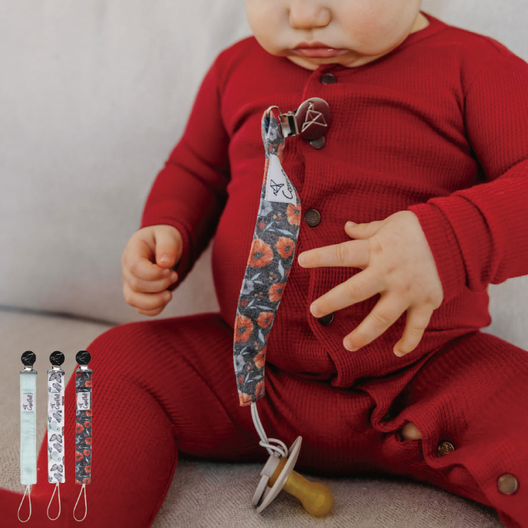 衛生面が気になるベビーのおしゃぶりや歯固めの落下を防ぎ、拾う手間が省けます。ストラップ部分には最先端の流行を取り入れたオリジナルデザインの生地を使用。