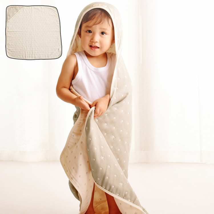 大判サイズ(約)80×80cmでお風呂あがりの赤ちゃんの体をすっぽりと包む