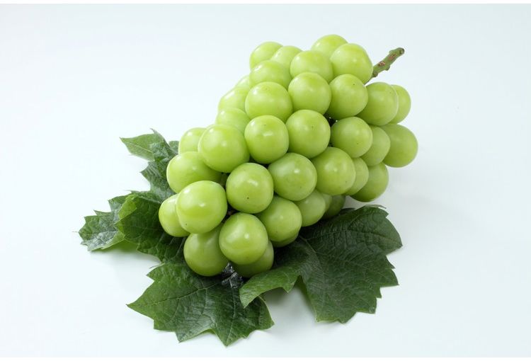 上品なマスカット香を持ち、大きな楕円(だえん)形の粒は硬くしまりのある肉質で歯切れがよいシャインマスカット。糖度は高く、酸味は少なめです。ブドウの中でも特に甘い味わいの品種です。果皮が薄く皮ごとパリッと食べられる手軽さも人気です。