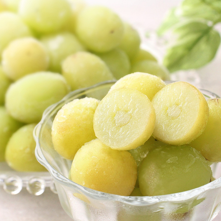 山形県産のシャインマスカットを、美味しさそのままに瞬間凍結しました。そのままシャリッと食べられ、まるでシャーベットのような味わいを楽しめます。ご自宅用に大袋でお届けいたします。