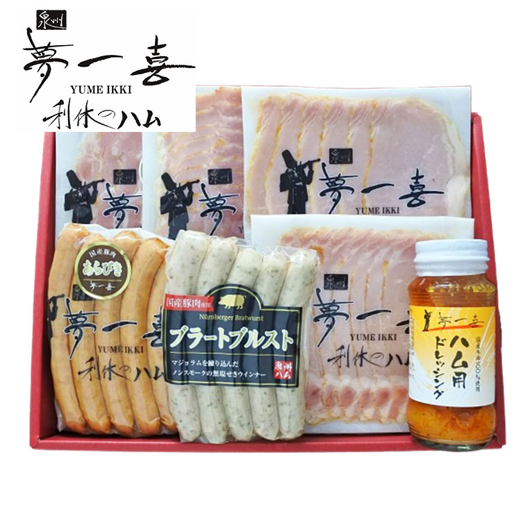 大阪 「夢一喜」 熟成ハム・ウインナー 詰合せ 7個 ハム ベーコン ウィンナー ドレッシング 冬ギフト お年賀 代引不可