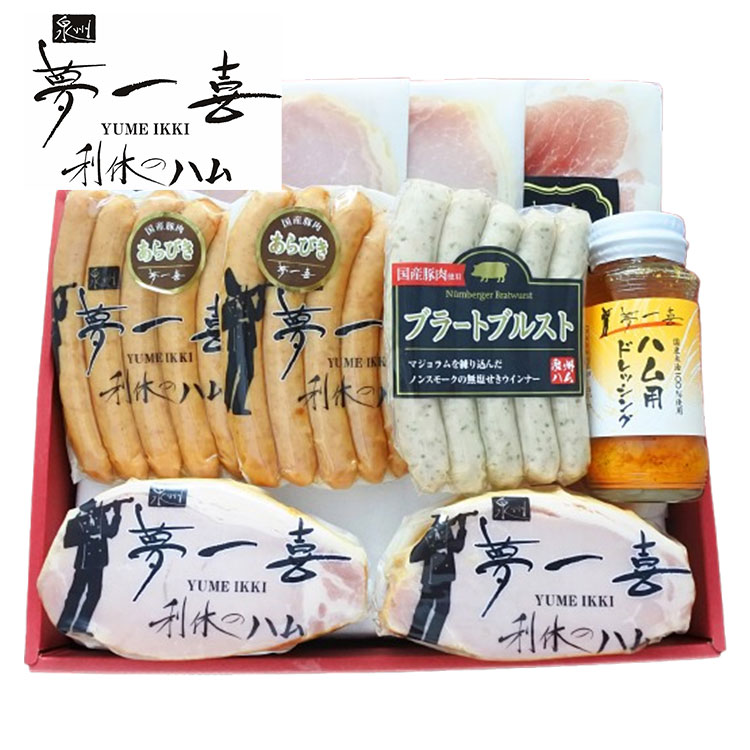 大阪 「夢一喜」 熟成ハム・ウインナー 詰合せ 9個 ハム ベーコン ウィンナー 生ハム ドレッシング 冬ギフト お年賀 代引不可