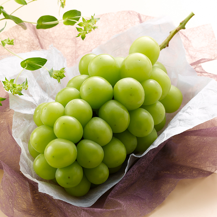 シャインマスカットは2006年に品種登録されたばかりのニューフェイスです。果肉は弾力があり、皮はとても薄く、皮ごと食べる事が出来ます。