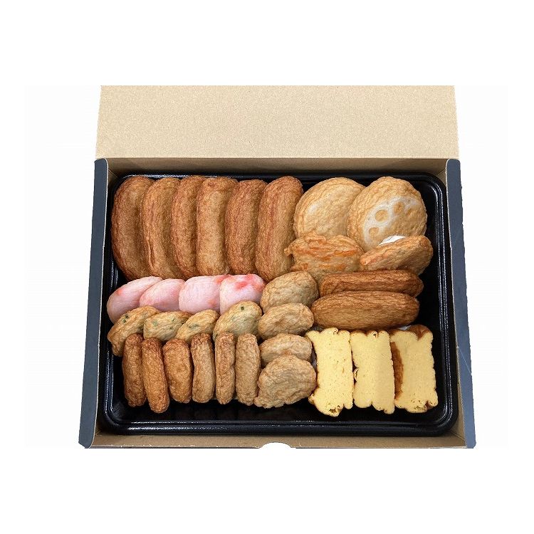 内容量:にら天×4、紅しょうが天×4、ごぼう天×4、特上揚×6、高浜焼×3、野菜天×2、上棒天×3、小判揚×2、れんこん天×2、いわし棒天×3