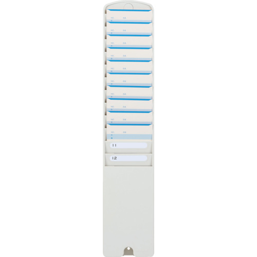 ●タイムカード用ラック 12枚差し●幅(mm):101●奥行(mm):32●高さ(mm):491●タイプ:12人用●12枚差し●樹脂製