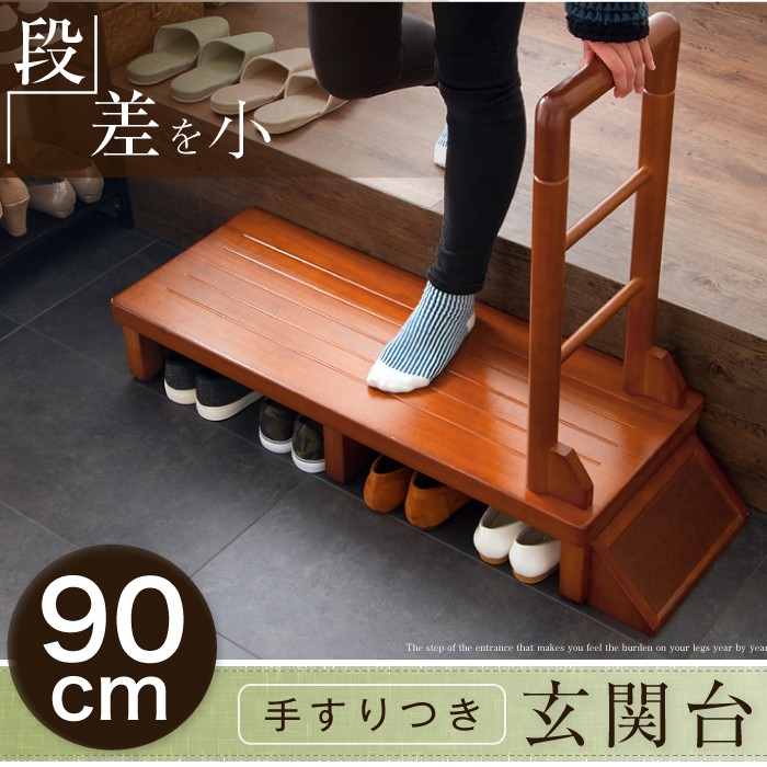 玄関台 手すり付き 幅90cm 手すり ステップ 台 玄関 段差 踏み台 昇降 木製 足場 おしゃれ 立ち上がり 高齢者 収納 昇降補助 介護