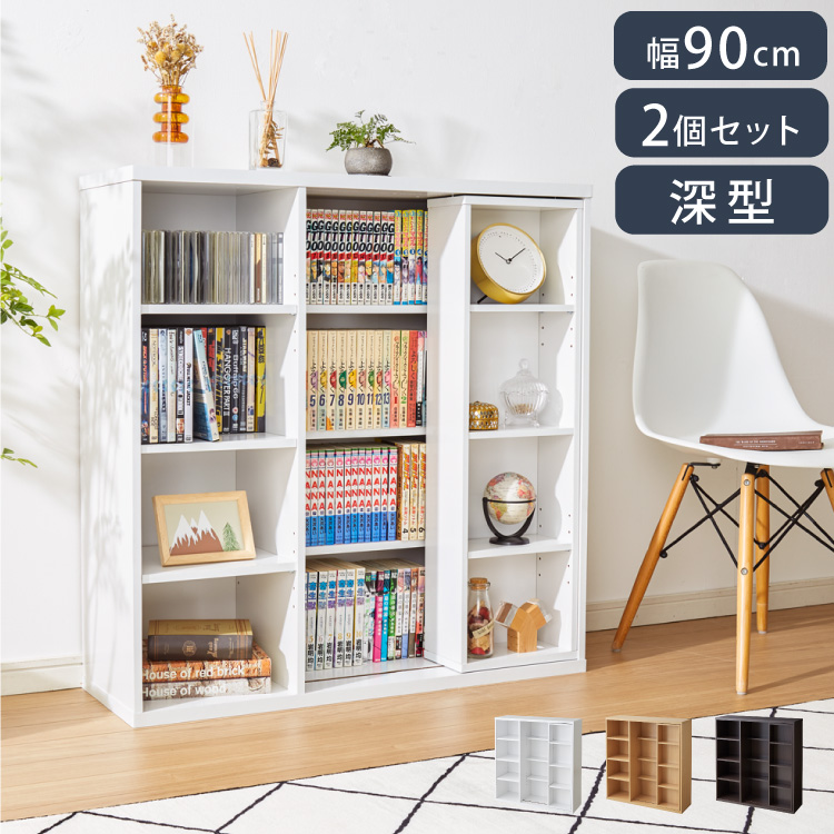本棚 書棚 スライド式 幅90 シングル 奥深タイプ 2個セット 奥行33 木製 コミックラック 漫画 書籍 収納 大容量 ブックシェルフ 木目 おしゃれ ブックラック
