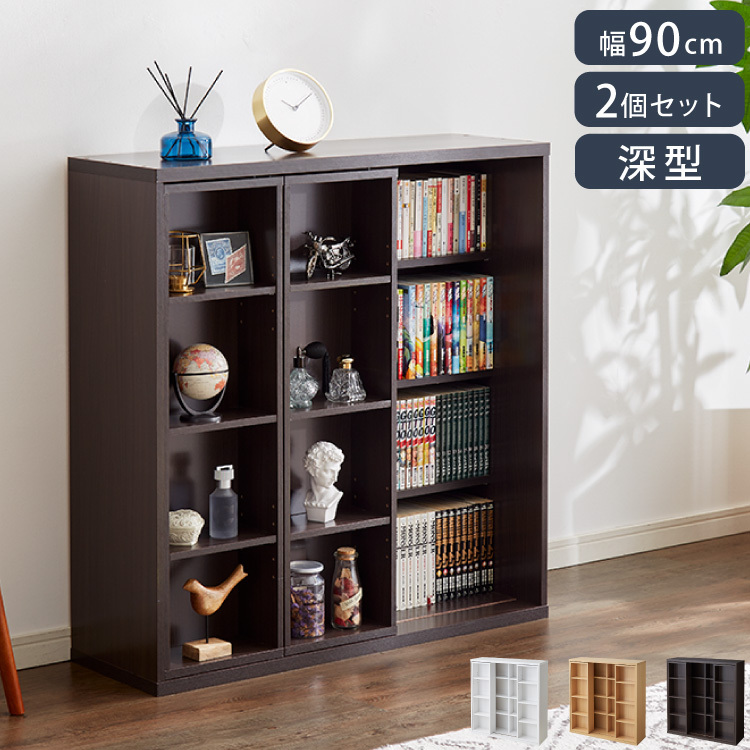 本棚 書棚 スライド式 幅90 ダブル 奥深タイプ 2個セット 奥行33 木製 コミックラック 漫画 書籍 収納 大容量 ブックシェルフ 木目 おしゃれ ブックラック