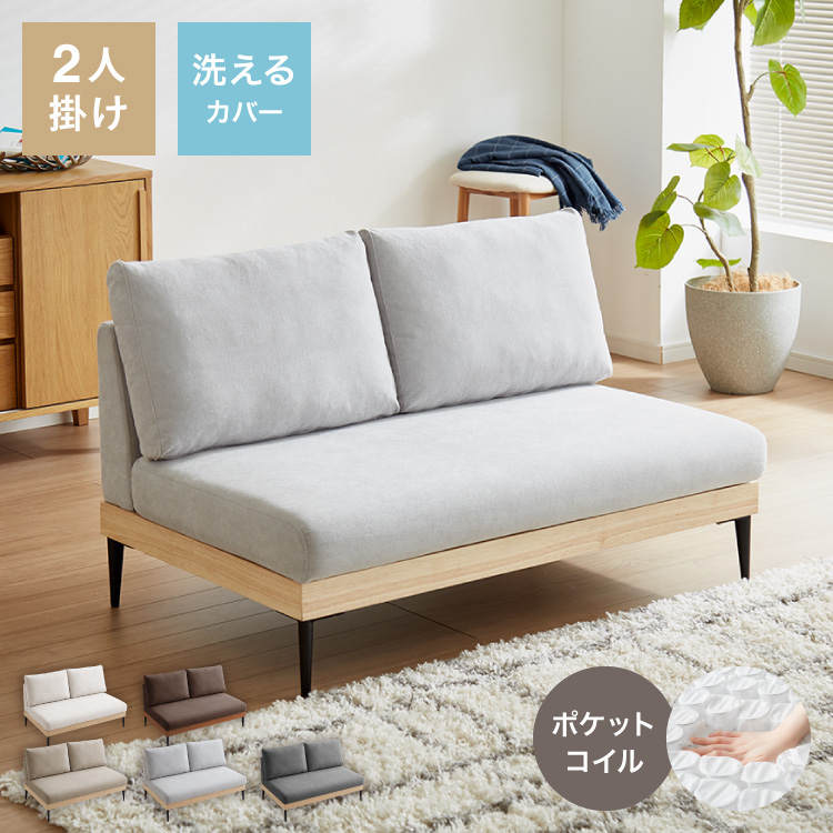 ソファー 2人掛け 単品 ソファ カバーリング 洗える 幅120 カバーリングソファ 木製 ポケットコイル 二人掛け 二人用 2.5人掛け ウッドフレーム 2WAY