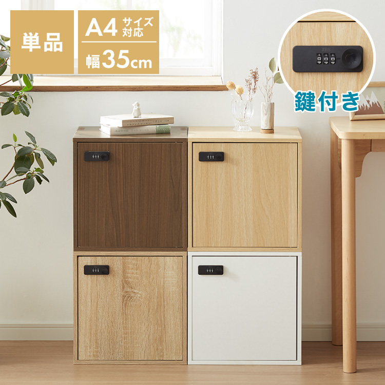 キューブボックス A4 木目 鍵付き 扉付き 幅35cm レイアウト自由自在 ダイヤル ダイヤル錠付きボックス 収納 収納ボックス 整理整頓 A4サイズ 本棚