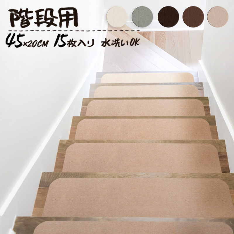 滑り止めマット 階段マット 15枚入り 滑り止め付き階段マット 45×20cm 洗える 吸着 防音 冷え対策 転倒防止 キズ防止