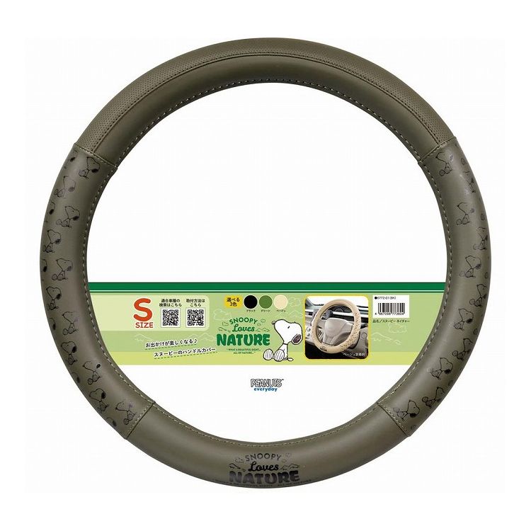 ●スヌーピーのアートと「SNOOPY Loves NATURE」のロゴをプリントしたハンドルカバー●マット調の素材でカジュアルになりすぎず車内のアクセントにピッタリです