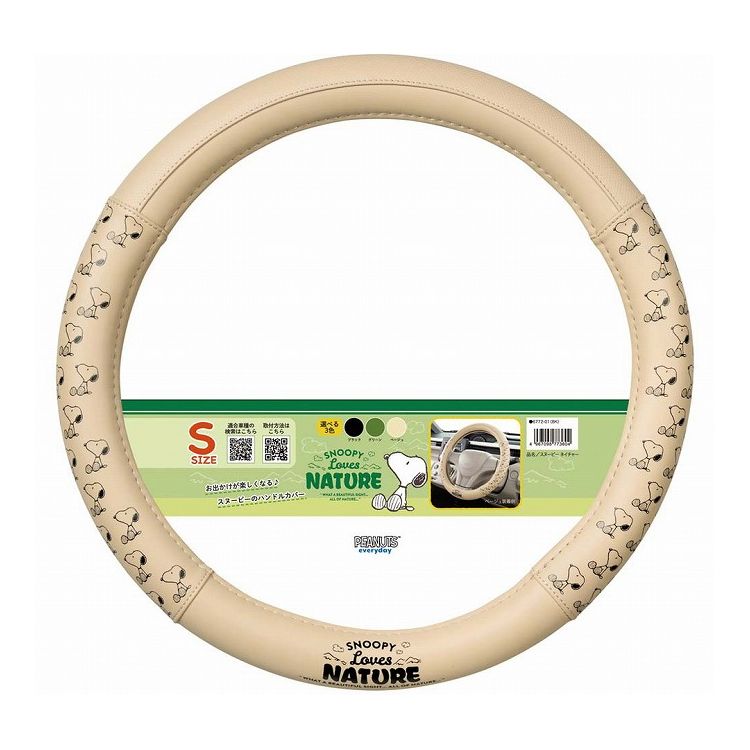 ●スヌーピーのアートと「SNOOPY Loves NATURE」のロゴをプリントしたハンドルカバー●マット調の素材でカジュアルになりすぎず車内のアクセントにピッタリです