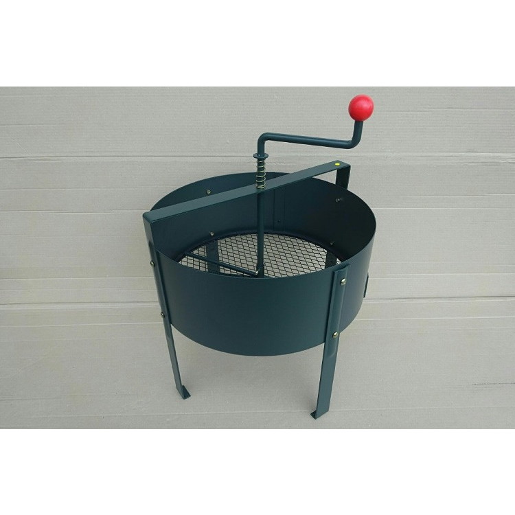 ●品質表示:本体:スチール製二重焼付け塗装仕上げ(下塗り:カチオン電着塗装、上塗り:静電焼付け塗装)/握り玉(赤色):合成樹脂/ネジ・割りピン・バネ:スチール製メッキ仕上げ/アミ(規格目):エキスパンドメタル材(二重焼付け塗装仕上げ)/アミのフチ:トリムゴム。