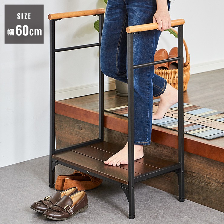 両手すり付き玄関台 幅60cm 玄関台 玄関 台 踏み台 ステップ 木製 玄関ステップ 段差 軽減 靴 補助具 昇降台 足場 立ち上がり 代引不可