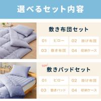 ピロー1個 (ダブルサイズのみ2個付き)、掛布団1枚、敷布団1枚、収納ケース1個