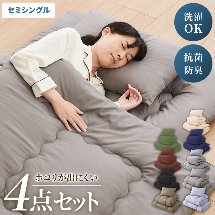 布団4点セット セミシングル Ever Clean エヴァークリーン ほこりが出にくい 中空ポリエステル綿 洗える ピーチスキン加工 軽量 おしゃれ