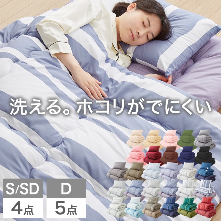 布団セット シングル 4点セット Ever Clean ほこりが出にくい 洗える 軽量 一人暮らし 来客用 学生寮 民泊 組布団 収納ケース